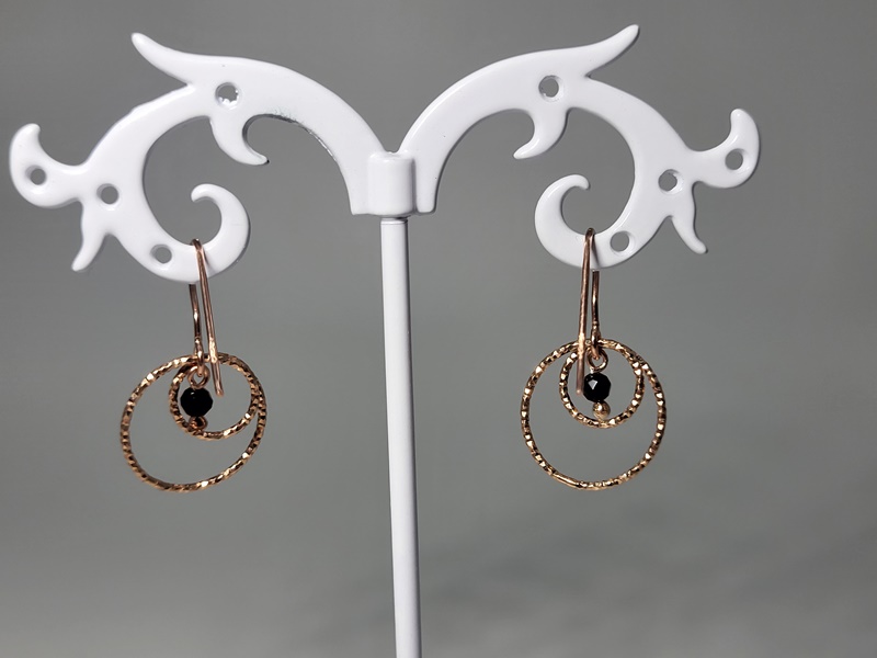 Πανέμορφοι ασημένιοι 925 rosegold κρίκοι με μαύρη Τουρμαλίνη