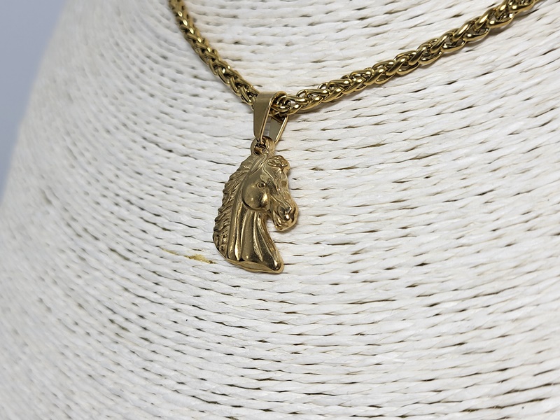 Ατσάλινο επίχρυσο κολιέ με σχήμα αλόγου. Διαστάσεις μοτίφ κολιέ 2,7*1,5.