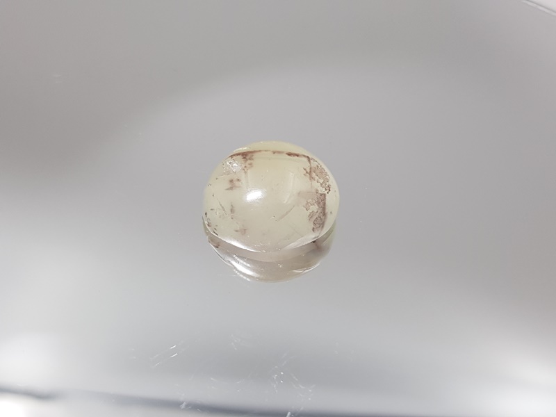 Ένα πανέμορφο χειροποίητης κοπής καμπουσόν σπάνιου Φθορίτη με έγκλεισμα ασημιού σε σχήμα round. Το καμπουσόν φέρει διαφάνεια και έντονη λάμψη ενώ η απόχρωσή του κυμαίνεται στους τόνους ανοιχτού πράσινου , είναι στα 61,95ct και οι διαστάσεις του είναι  2,4*2,5*1,7.