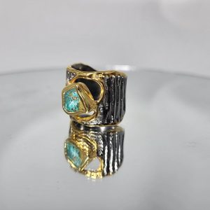 Το δαχτυλίδι είναι δεμένο με ασήμι 925 και επιχρυσωμένο σε συνδυασμό λευκού και με κίτρινου χρυσού. Ένα εξαιρετικό κόσμημα από την ξεχωριστή και χειροποίητη unique collection!