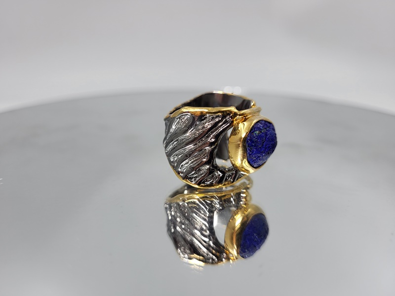 Το δαχτυλίδι είναι δεμένο με ασήμι 925 και επιχρυσωμένο σε συνδυασμό λευκού και με κίτρινου χρυσού. Ένα εξαιρετικό κόσμημα από την ξεχωριστή και χειροποίητη unique collection!