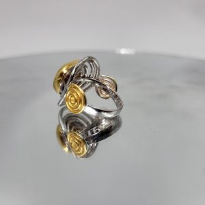 Το δαχτυλίδι είναι δεμένο με ασήμι 925 και επιχρυσωμένο σε συνδυασμό λευκού και με κίτρινου χρυσού. Ένα εξαιρετικό κόσμημα από την ξεχωριστή και χειροποίητη unique collection!
