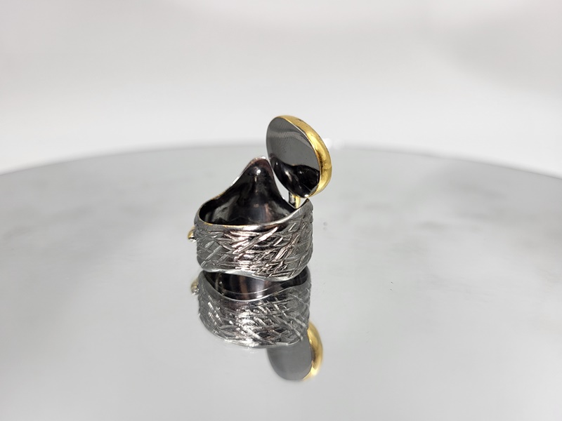 Το δαχτυλίδι είναι δεμένο με ασήμι 925 και επιχρυσωμένο σε συνδυασμό λευκού και με κίτρινου χρυσού. Ένα εξαιρετικό κόσμημα από την ξεχωριστή και χειροποίητη unique collection!