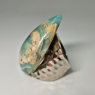 Brass ring-Μπρούτζινο Δαχτυλίδι με Σμιθσονίτη_BR90