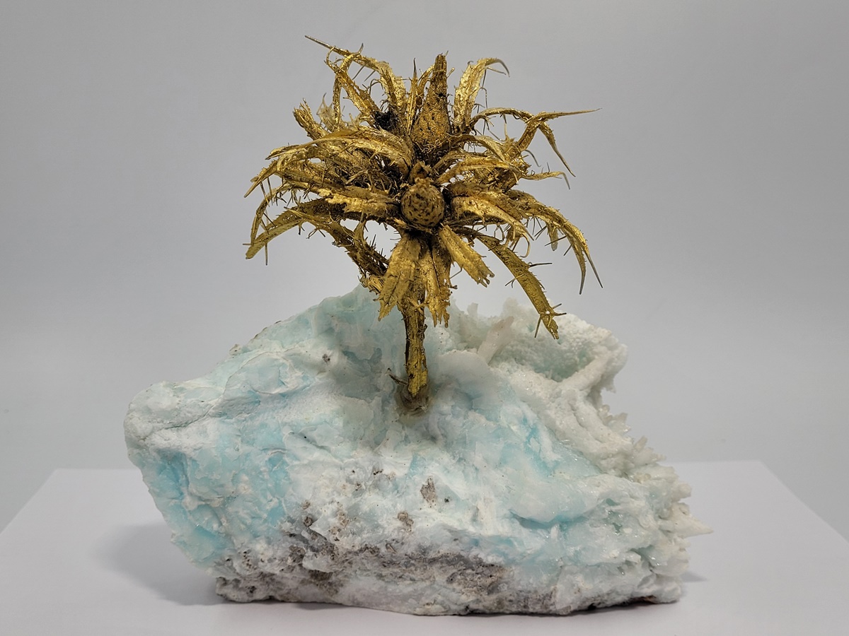 Χειροποίητη κατασκευή δέντρου ζωής με Αραγωνίτη και φύλλα απο brass