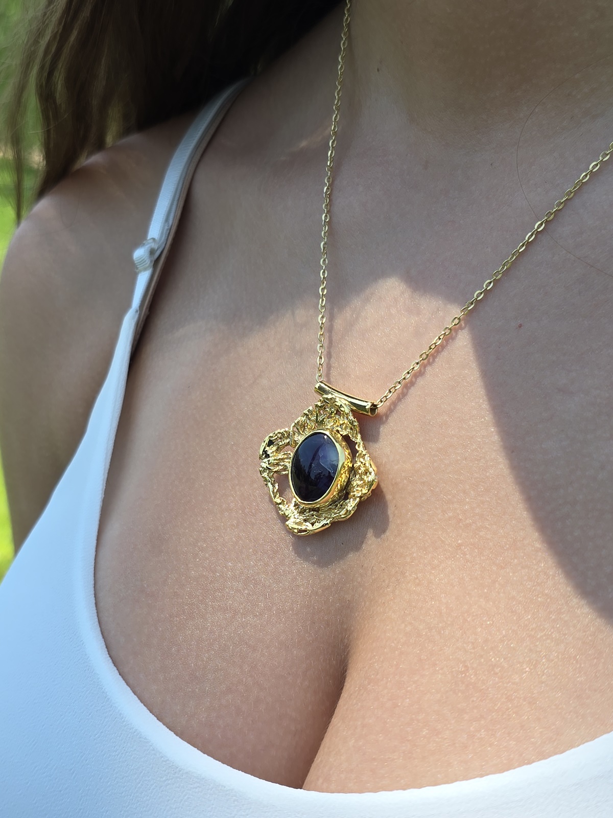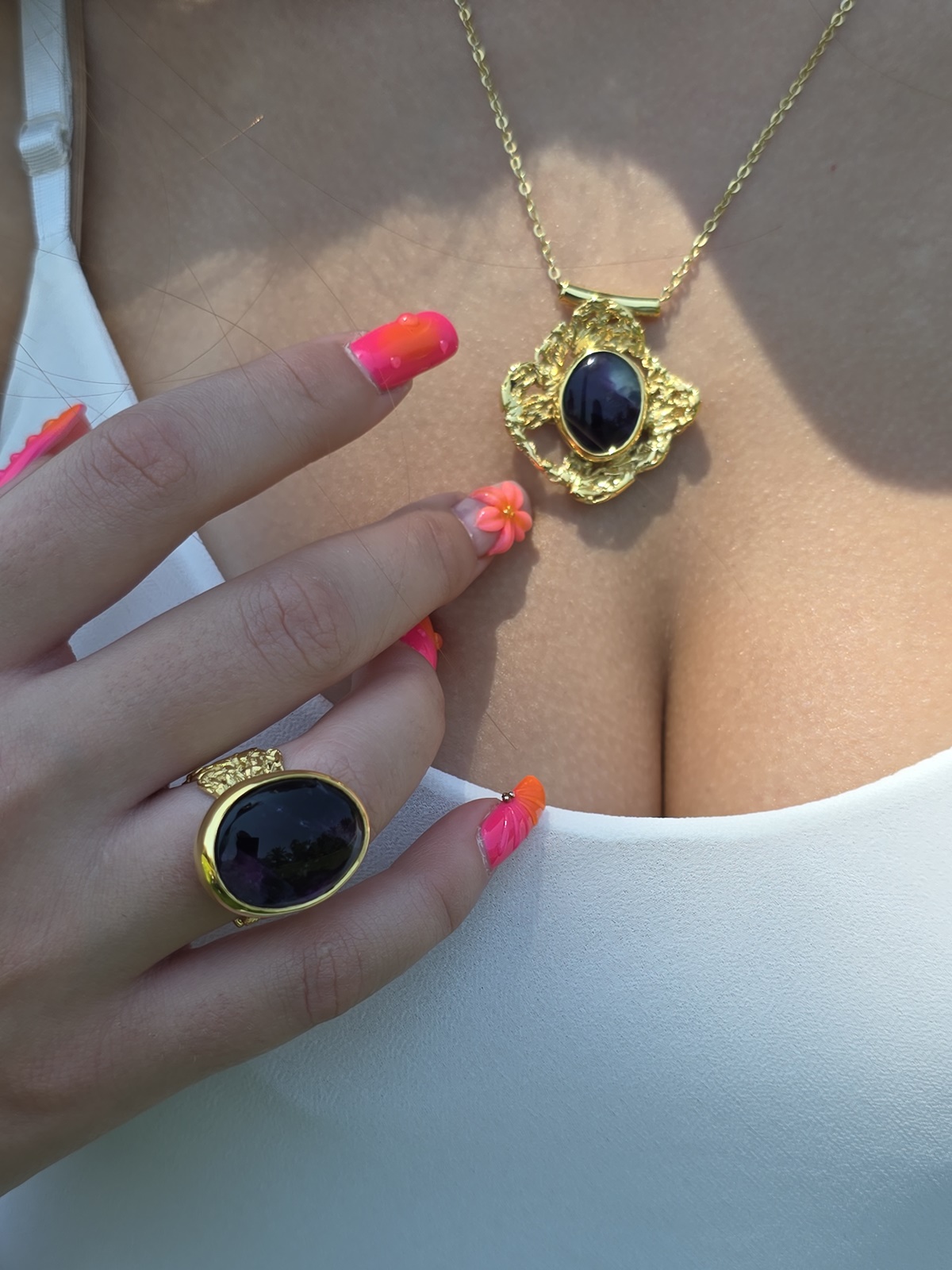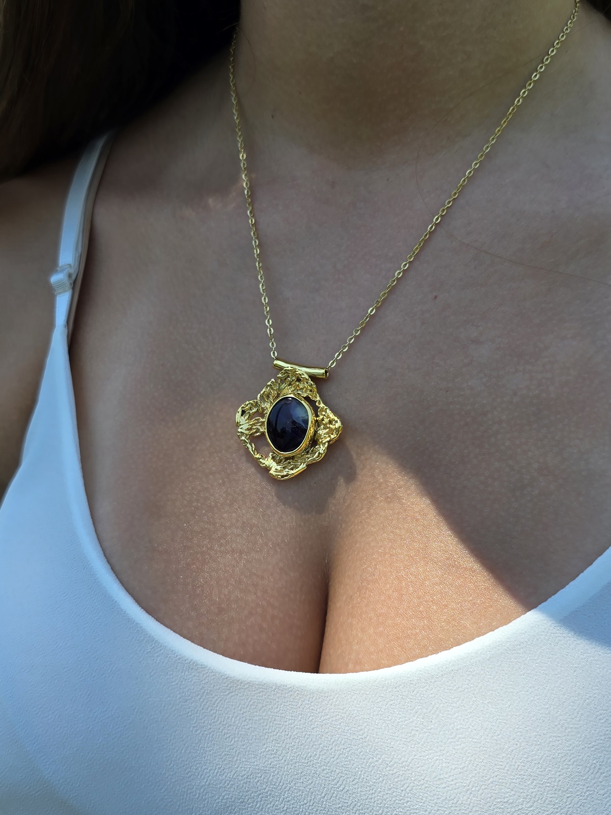 Όλα τα κοσμήματα είναι φιλοτεχνημένα από ασήμι 925 επιχρυσωμένο στα 18Κ και φέρουν 100% φυσικούς ορυκτούς λίθους σε χειροποίητες κοπές.