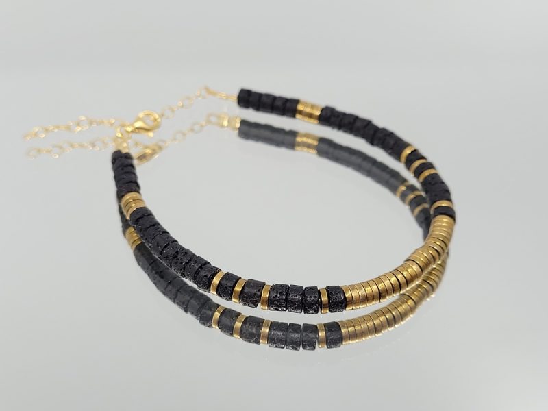 Χειροποίητο βραχιόλι με Φυσική Λάβα σε ροντέλ κοπή και Αιματίτη επίχρυσωμένο σε ροντέλ κοπή 4mm.