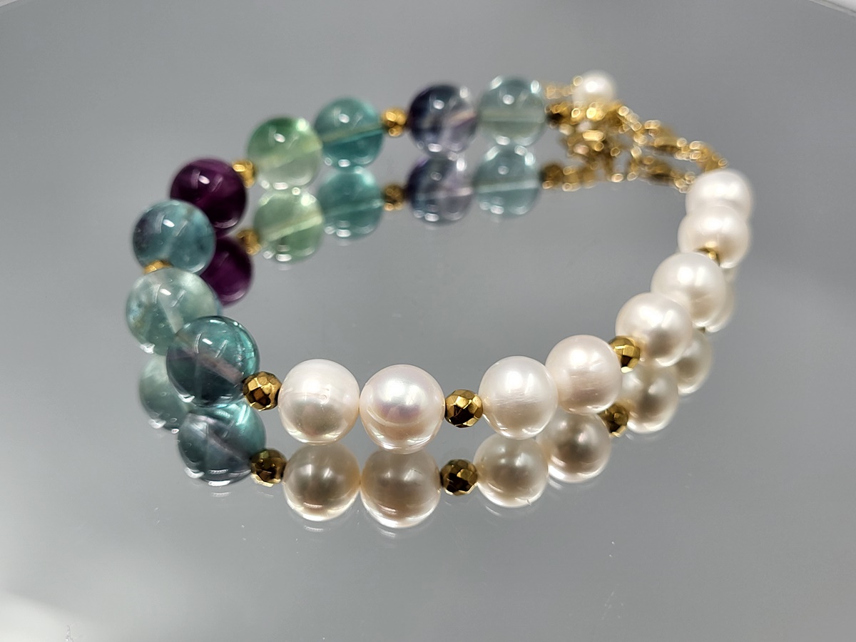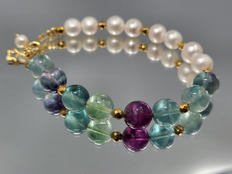 Βραχιόλι με Φθορίτη-Fluorite και Μαργαριτάρια – B233