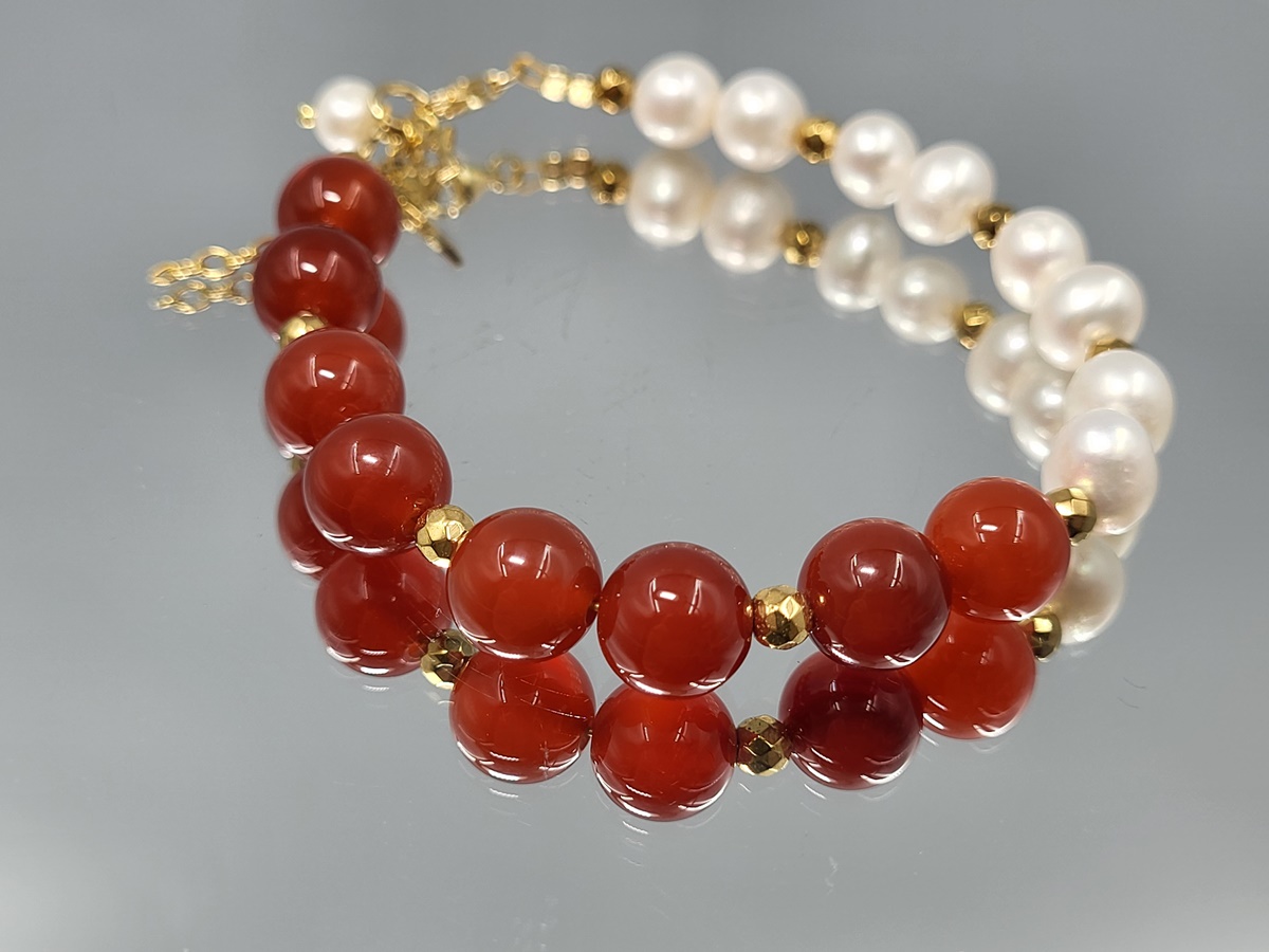 Βραχιόλι με Καρνεόλη-Carneole και Μαργαριτάρια – B236