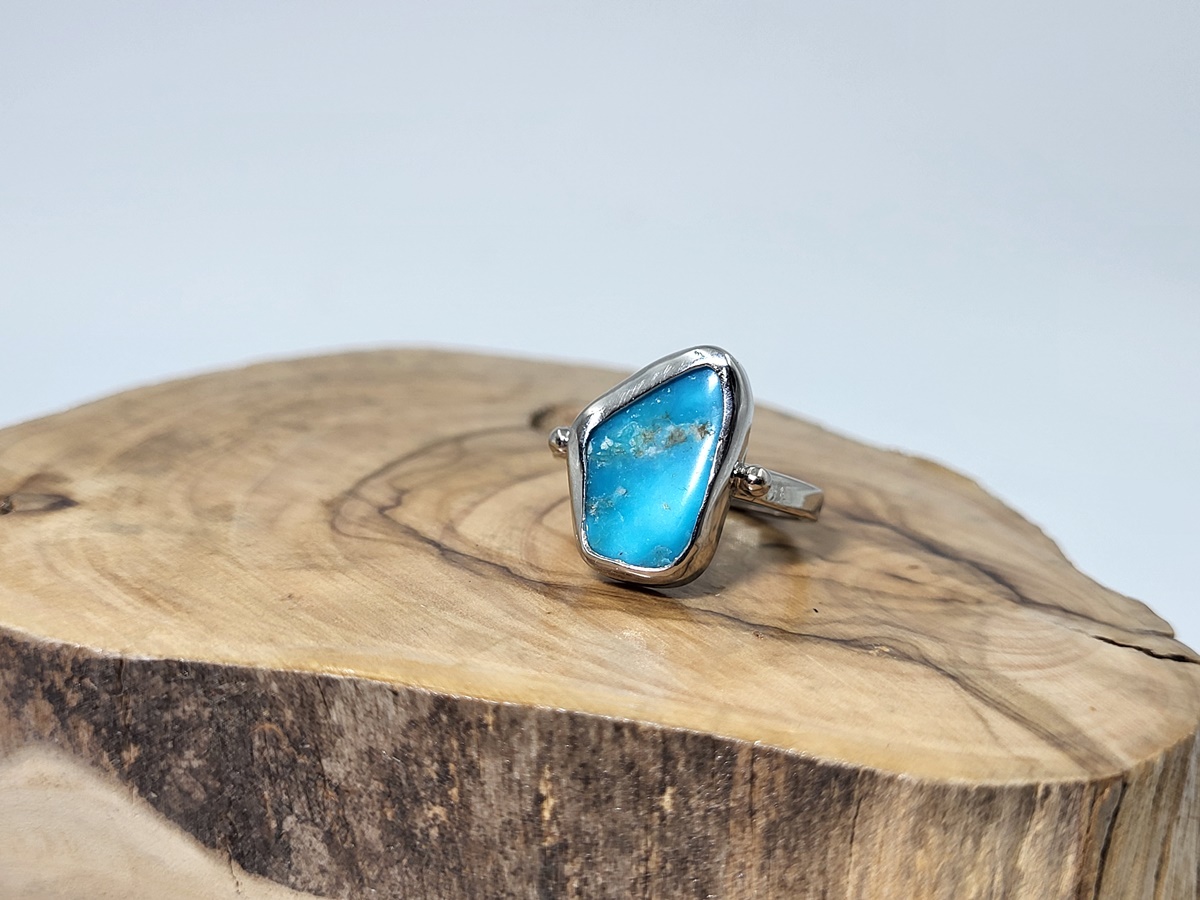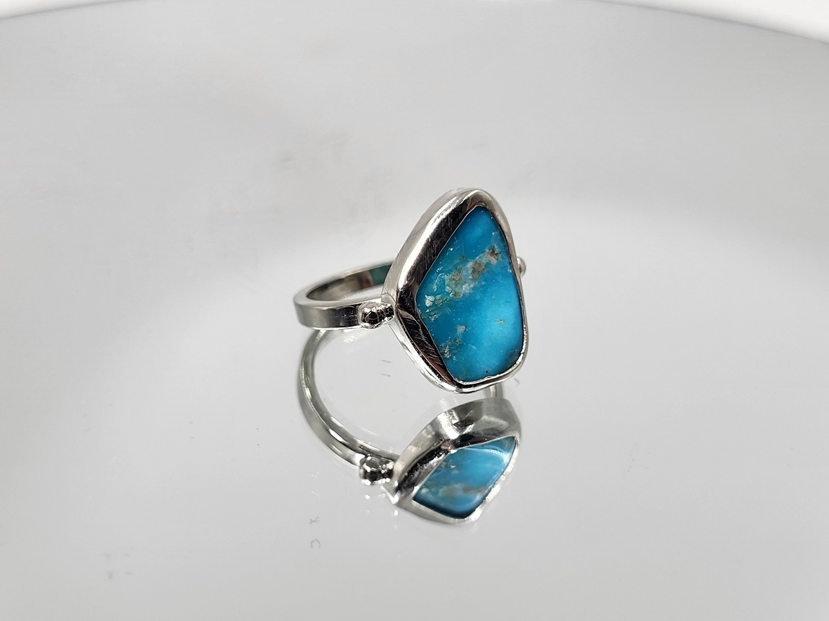 Χειροποίητο ασημένιο 925 και πλατινωμένο δαχτυλίδι με 100% φυσικό τυρκουάζ σε εξαιρετική ποιότητα.