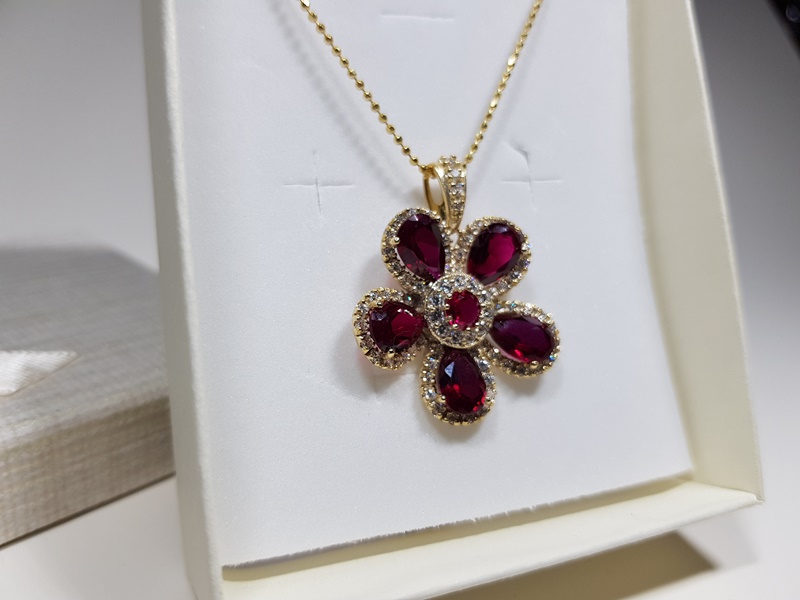 Ένα πανέμορφο κολιέ γεμάτο ζιρκόν. Το μοτίφ του κολιέ είναι σε σχήμα μαργαρίτας και διακοσμείται με κόκκινα και λευκά ζιρκόν, οι διαστάσεις του μοτίφ είναι 3×3εκ. και διατίθεται με αλυσίδα ασημένια 925 διπλά επιχρυσωμένη στα 40εκ. Πραγματικά μοναδικό και εξαιρετικής ποιότητας και λάμψης κομμάτι. Απλά το φοράς και μαγνητίζεις τα βλέμματα από τη λάμψη και την πολυτέλεια! Χαρίστε ένα πραγματικά ξεχωριστό δώρο σε εσάς ή στους ανθρώπους σας και εντυπωσιάστε τους!